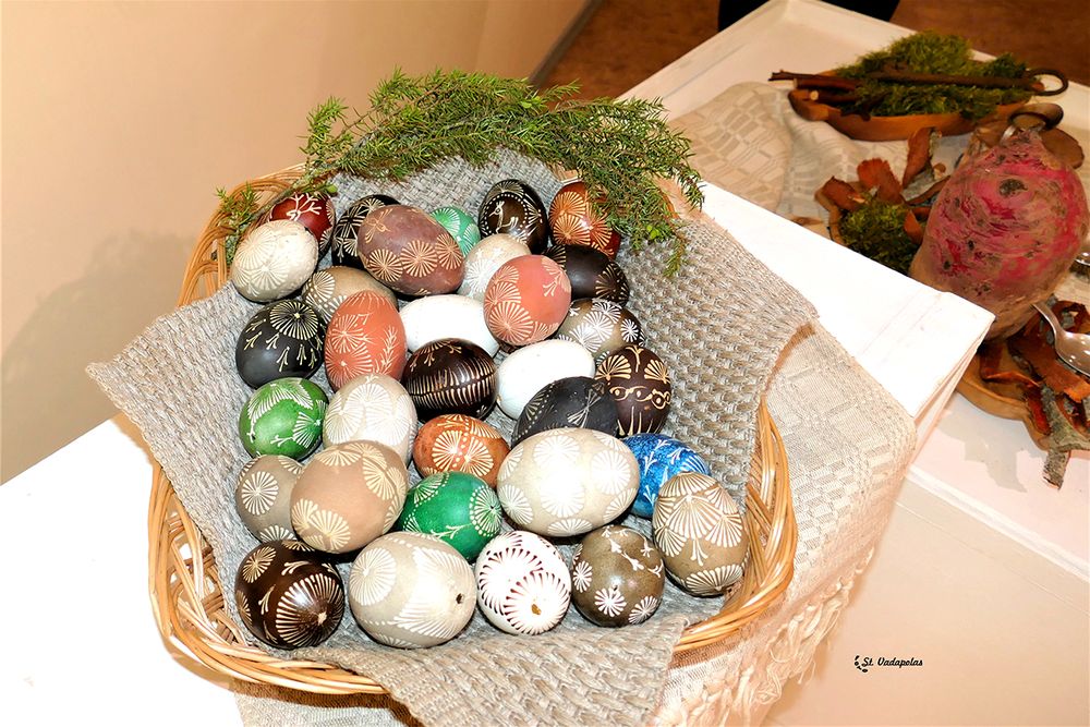 Paroda, pasak muziejininkės Vidos Skujienės, alsuojanti pavasariu, artėjančiomis Šv. Velykomis. Tautodailininkė iš Šukionių R. Bieliakienė pristatė vašku margintų margučių kolekciją. Auksarankė sakė, kad liaudies menai jai nuo pat mažens nebuvo svetimi. „Bobutės seserys, ypač Juzefa Aukštikalnytė-Juodokienė ir kiti, artimos aplinkos žmonės, tuo užsiėmė, puošė savo buitį“,- pasakojo R. Bieliakienė.