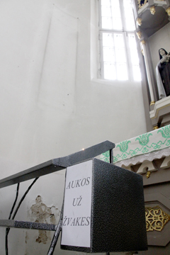 Kita bažnyčioje sutikta garbaus amžiaus tikinčioji taip pat matė, kaip per rytines pamaldas du greta vienas kito sustoję vyrai mikliais judesiais atidarė aukų dėžutę ir ištraukę pluoštą litų pasišalino.