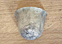 TAURĖ: Taurė iš Užvenčio Šv. Marijos Magdalietės bažnyčios iki gaisro ir preliminariai identifikuoti fragmentai po gaisro. Auksuotas sidabras. Jonas Kristupas Bankas (?) Lietuva, 1756 metai.
