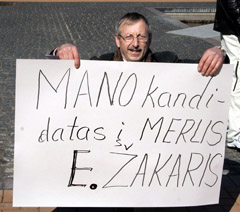REIKALAVIMAS: Vakar prie savivaldybės vykusiame pikete vienas piketuotojų reikalavo meru rinkti Edvardą Žakarį, kuris pats atsisakė ir mero posto, ir Tarybos nario mandato.