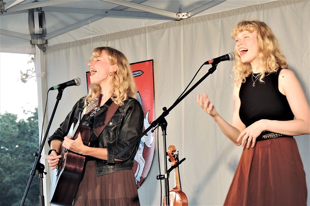 Į renginį atėjusiems biržiečiams buvo skirta net trijų valandų programa. Pirmiausia įvyko dainuojamosios poezijos festivalis „Skambantis vakaras“. Kultūros centro kiemo lauko scenoje dainavo dainininkė Gustė Šeškaitė, gitara grojo Danielė Černiauskaitė. Žiūrovų plojimų sulaukė patyrę dainuojamosios poezijos atlikėjų biržiečių Vigilijos Frankienės ir Leonido Čiudaro, Laimutės ir Artūro Aukštuolių, Jūratės Garnelienės ir Lino Garnelio bei šiauliečių Gitanos ir Giedriaus Morkių duetai. Klausėmės biržiečio Eduardo Juknevičiaus ir ukrainietės Liudmylos Ross dainų. Kaip visada šauniai ir pasirodė Leonido Čiudaro vadovaujama Biržų kultūros centro dainuojamosios poezijos studija. O koncertą vainikavo grupės „Baltos varnos“ pasirodymas. Grupės dainininkės dvynės Milda ir Teresė net tik pačios šėlo scenoje, bet ir biržiečius išjudino pritarti kai kurioms dainoms. Buvo gražu. Pilnas kiemas žiūrovų susirinko. Tačiau, pasirodo, kitur buvo geriau.