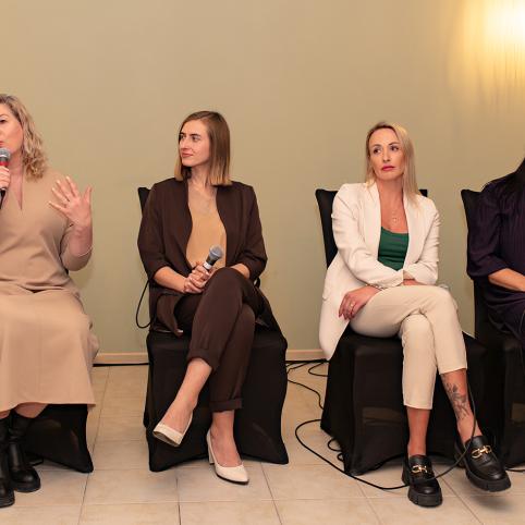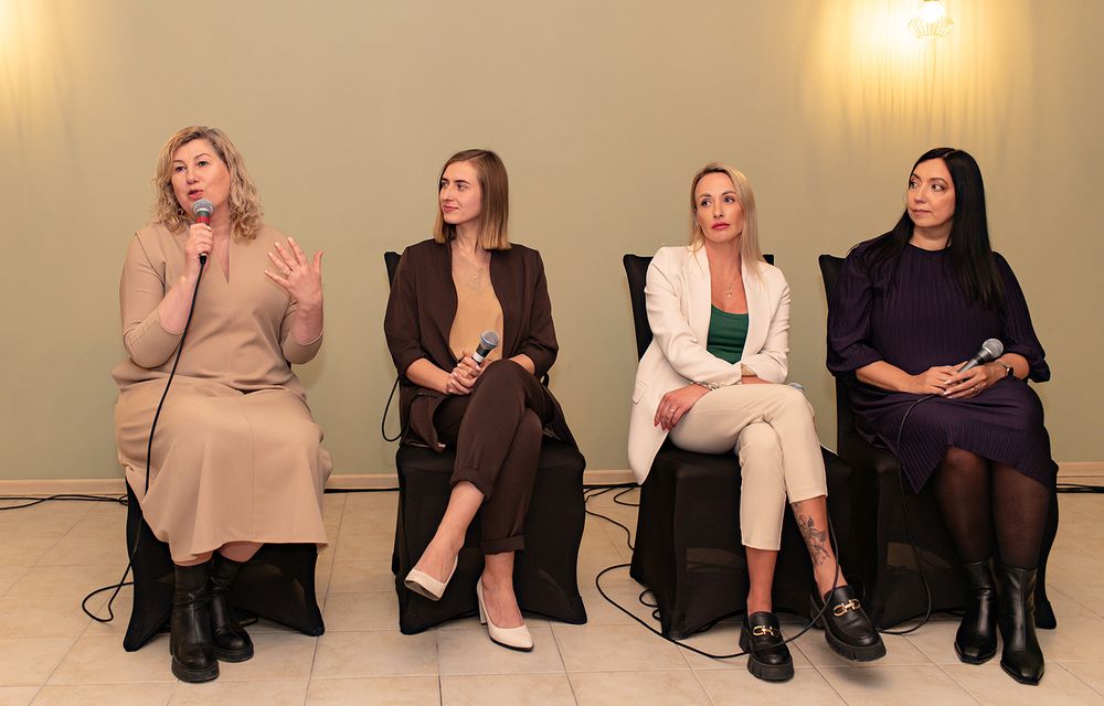 Biržuose verslus sukūrusios Kristina Pikūnė (iš kairės), Toma Kondrotaitė – Kaveckienė, Indra Simėnė ir Irma Januševičiūtė – Spudienė teigė, kad moterys sugeba ne tik vaikus auginti, bet ir išradingai vadovauti.