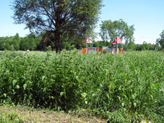 AIKŠTELĖ: Lieporių parke žolė baigia užgožti vaikų žaidimų aikštelę.