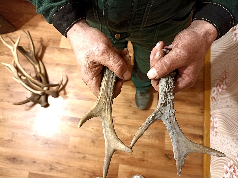 „Eini ir žvalgaisi, kur žvėrių pėdos, kur jų mitybinė bazė, kur medžių žievė padraskyta – ten jie ragus valėsi. Pagal tai galima spręsti, kur didesnė tikimybė ragus rasti“,- paaiškino M. Marcinkevičius.
