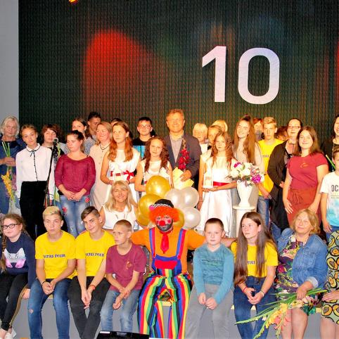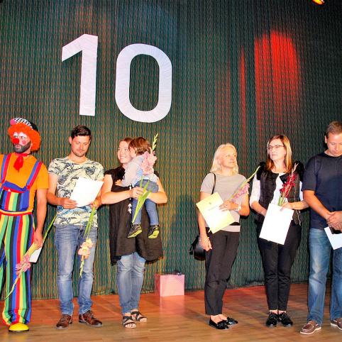 Į sceną buvo sukviesti anksčiau Centre dirbę žmonės, kurie pasidžiaugė šiuo darbu, tuo, kad įdomu ir gera dirbti tarp vaikų ir jausti jų meilę. Šiuo metu Centre dirbanti Jūratė kalbėjo, kad čia ji tapo ir namų šeimininke, ir mama, kuriai tenka visi darbai ir lankytojų meilė. Jūratė padėkojo šio renginio organizatorei Centro lankytojai Deimantei ir visiems vaikams, kurie dalyvavo jų pačių sumanytoje šventinėje programoje. Šventės metu padėkos raštai buvo įteikti keliolikai Centro rėmėjų ir pagalbininkų.