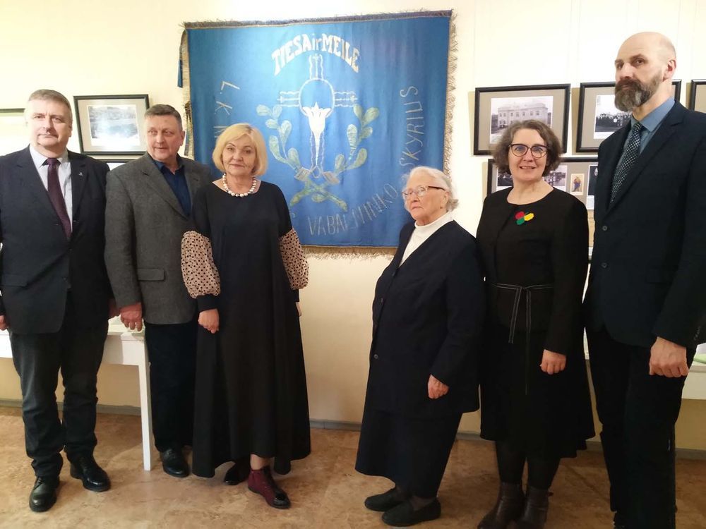 Lankytojai su įdomumu apžiūrėjo senuosius leidinius, bažnytinius reikmenis, organizacijų vėliavas, o ypač seną, bet atjaunintą Katalikių organizacijos vėliavą.
