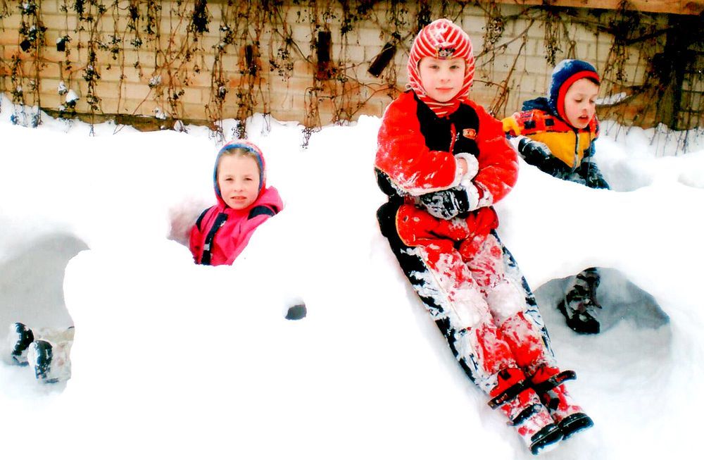 Gintai pritaria ir Vaida su Tomu. Kalėdos jiems tapatinasi su balta spalva, sniegu. Snieguotų Kalėdų jų gyvenime būta. Trynukai prisimena didžiules pusnis, išraustus urvus jose. Ir save skęstantį baltuose snaigių pataluose. Mama Vilma sugrįžta iš darbo ir savo akimis netiki kas jų kieme darosi... Bet netrukus paaiškėja: čia jos trynukų kūrinys, jų vaikystės tvirtovė...