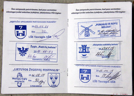 ATMINIMAS: Žygeivių pasuose atspaudai liudija apie nueitus kilometrus.