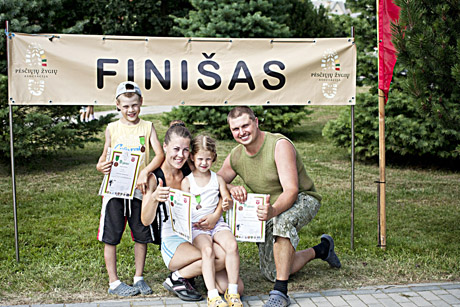 Šalia mamos ir tėčio įsitaiso šešiametė Rugilė bei devynerių Gabrielius. Visi keturi – ištikimi ir kantrūs bendražygiai. Vaikai, vis pakeldami akis į tėvus, klausia, ar jau gali atsinešti savo žygeivių pasus. „Bėkit, bėkit“, – nusijuokia mama Jurgita.