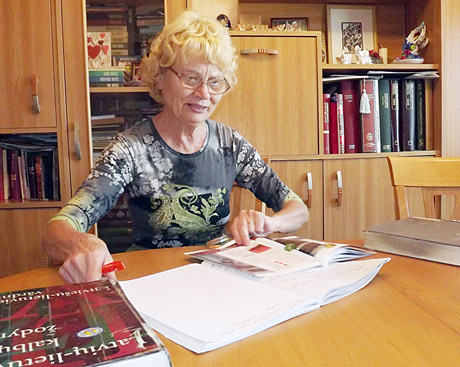 – Tarp jūsų vertimų yra labai skirtingos tematikos, žanro kūrinių: poezijos, pjesių, apsakymų, romanų, tarp jų – istorinių (Valdžio Rūmnieko, Andrejs Miglos romanai „Kuršių vikingai“ ir „Sveikas, linksmasis Rodžeri"), mokslinio darbo pagrindu parengtų knygų (Valdžio Celmo „Baltų raštai ir ženklai, Baltų pasaulio modelis: struktūra. Vaizdiniai. Simboliai"). Turbūt tam nepakanka kalbinių žinių?