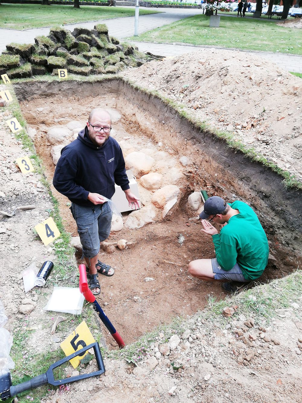 Ar­cheo­lo­gas Ka­ro­lis Du­de­ris ka­si­nė­ji­mus vy­lė­si baig­ti šios sa­vai­tės pra­džio­je. Ar at­kas­tos bu­vu­sios evan­ge­li­kų liu­te­ro­nų baž­ny­čios lie­ka­nos bus eks­po­nuo­ja­mos, ar vėl už­vers­tos že­mė­mis, at­sa­kys lai­kas.