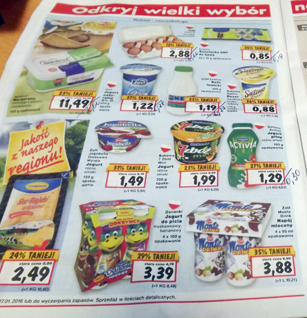 S. Kai­rai­tie­nė skai­čiuo­ja, kad deš­ra, Lie­tu­vo­je kai­nuo­jan­ti dau­giau kaip tris eu­rus, Len­ki­jo­je par­duo­da­ma maž­daug eu­ru pi­giau. Ap­va­lų sū­rį, ku­ris pa­na­šus į lie­tu­viš­ką „Li­li­pu­tą“, bet yra len­kų ga­my­bos, pir­ko maž­daug už 1,5 eu­ro. Lie­tu­vo­je to­kį pat par­da­vi­nė­ja po tris eu­rus.