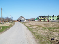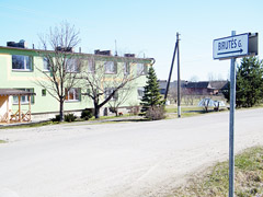 Kolūkio laikais statytame daugiabutyje gyvena keturios šeimos. Butai su visais patogumais — per du aukštus. Kiekvienas gyventojas turi atskirą įėjimą į savo būstą. Ant vienų durų dar tebekabo Kalėdų vainikėlis. Buto šeimininkai išvykę į užsienį.