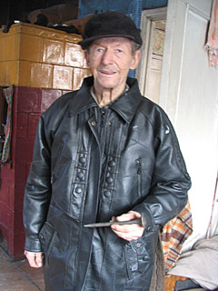 Juozas sėdi virtuvėje. Kniedėmis sujungia odos, gumos diržus ar net gaisrinėse nurašytas vandens žarnas, taip sukuria plėškes. Per žiemą padarytų plėškių jau primestas pilnas kampas. Devyniasdešimtmetis niekaip negali paleisti darbo iš rankų. Daro ne tik plėškes — pina krepšius, drožia grėblių ir kirvių kotus.