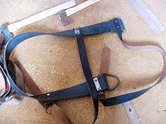 PLĖŠKĖS: 10— 15 centimetrų pločio odinis krūtindiržis–pagrindinė plėškės dalis. Galuose yra metalinės kilpos, prie kurių tvirtinami viržiai. Du trečdaliai plėškės krūtindiržio turi gulėti ties peties-mentės sąnariu, truputį virš jo, bet viršutinis krūtindiržio kraštas neturi spausti gerklės. Juozas Streckis sako, jog dabar plėškėms trūksta geros tinkamos medžiagos. Prieš karą žydų krautuvėse buvo pardavinėjamos odinės fabrikinės plėškės.