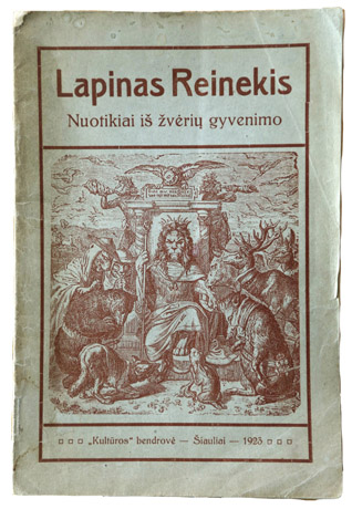 VERTIMAS: „Lapinas Reinekis. Nuotykiai iš žvėrių gyvenimo“ – vokiečių poeto J. V. Gėtės kūrinio apie gudruolį lapiną vertimas, išleistas 1923 metais Šiauliuose.