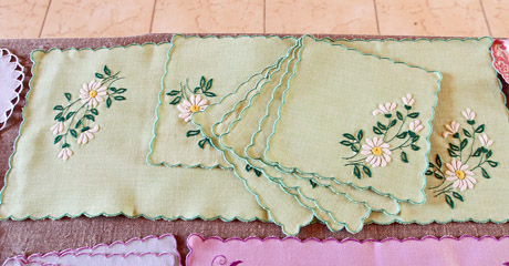 SERVETĖLĖS: Parodoje puikavosi ne vienas komplektas siuvinėtų servetėlių.