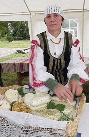 KAIMYNAI: Viešnia iš Elėjos (Latvija) Janina Muižniece prekiavo sūriais su ožragės sėklomis, mocarela, taip pat pjaustytu ir indeliuose marinuotu sūriu, kuris renginyje išrinktas aštriausiu.