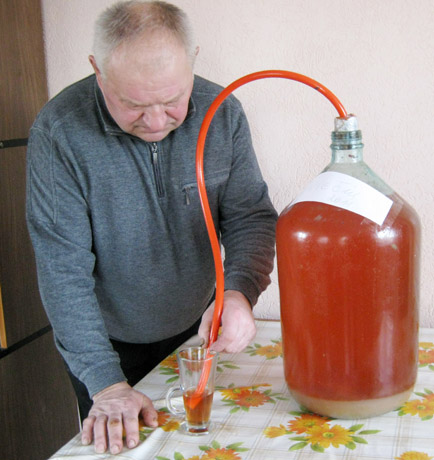 PATIKRINIMAS: Bronius Vasiliauskas apžiūri, patikrina, kaip vynas rūgsta.