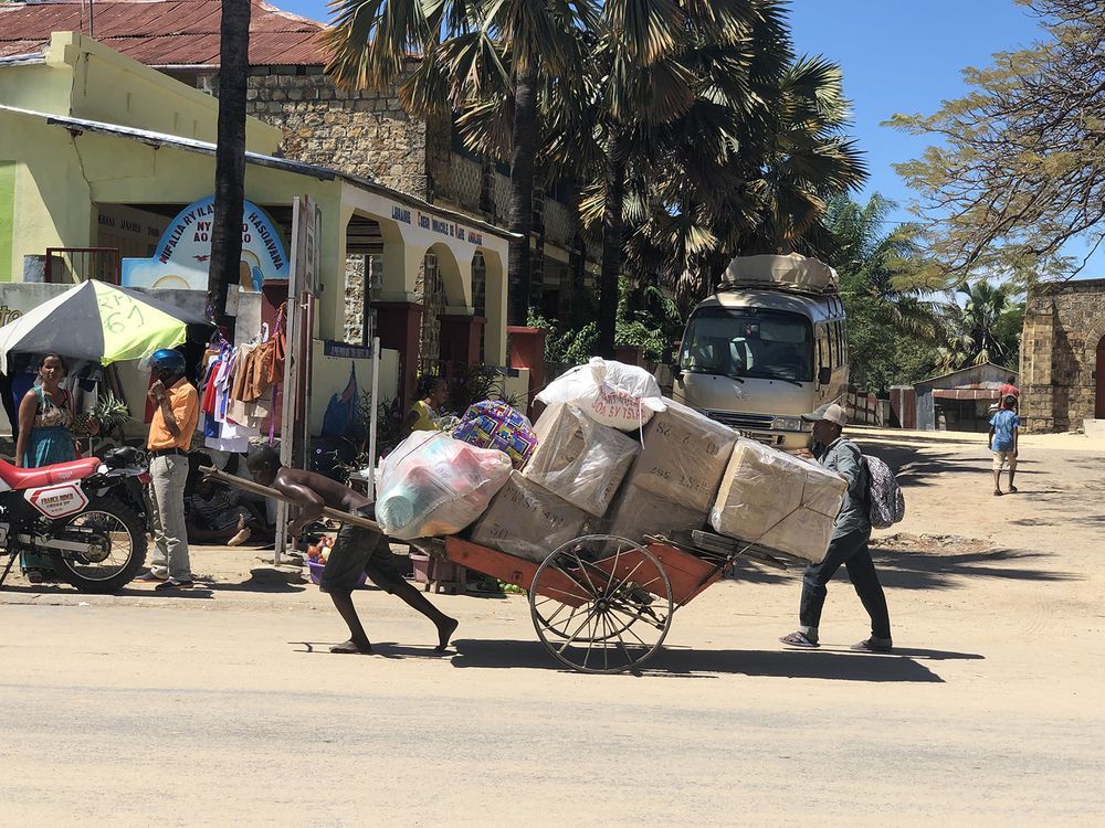 270 vietų lėktuvui nusileidus kitos Madagaskaro salos Nosy Be oro uoste, orlaivių stovėjimo aikštelėje nusidriekia didžiulė keliautojų eilė. Oro uostas – nepaprastai mažas, vizos išduodamos atvykstantiems vos keliuose patikros punktuose. Susimokėjus už vizą (35 EUR) vieno vietoje, ją įklijuoja į pasą, toliau dar vienas pareigūnas pavarto pasą ir paprašo anglų kalba „Dovanos!“, t.y. kyšio. Beveik visi europiečiai pasieniečiams duoda po 5-10 eurų. Tuo metu lagaminai iškraunami iš lėktuvo ir rankiniu būdu atnešami į atvykimo salę. „Ko norėti, Afrika!“, – per daug nesistebi turistai. Po kelių valandų autobusas veža mus į jūrų uostą, iš kur kateriu plaukiame į pagrindinę Madagaskaro salą. Beje, Nosy Be – tai sala-kurortas, kur gana daug europietiško lygio viešbučių, tačiau norėjosi susipažinti su tikruoju šalies gyvenimu.