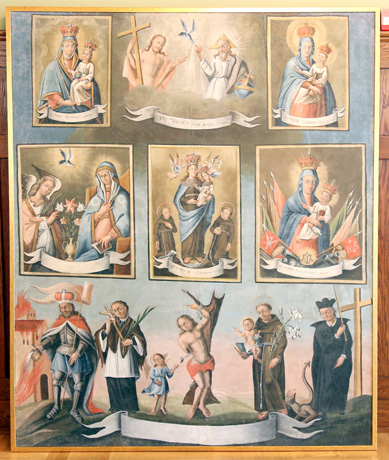 Re­li­gi­nio siu­že­to alie­ji­nės ta­py­bos dar­bas „Auš­ros“ mu­zie­jų pa­sie­kė apie 1940 me­tus. Pa­veiks­le vaiz­duo­ja­mos sep­ty­nios re­li­gi­nės sce­nos, pen­kio­se iš jų yra Švč. Ma­ri­ja. Ma­no­ma, kad tai – XIX am­žiaus dar­bas, au­to­rius ne­ži­no­mas.
