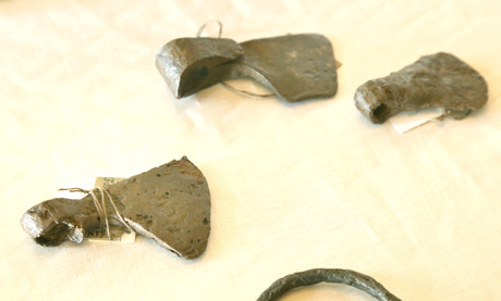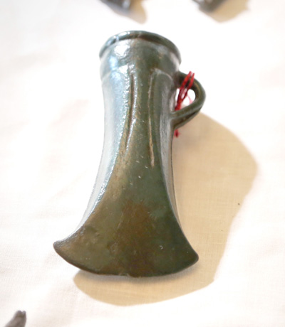 KIR­VE­LIAI: Mi­nia­tiū­ri­niai kir­ve­liai. Pa­go­niš­kais lai­kais į ka­pą bū­da­vo de­da­mi dar­bo įran­kiai ir gink­lai. Kad ne­rei­kė­tų dė­ti bran­gaus daik­to, bū­da­vo da­ro­mi mi­ni­ma­lūs – įdė­da­vo į ka­pą ne pa­tį daik­tą, o daik­to sie­lą.