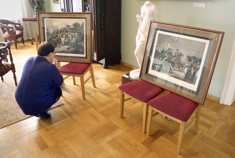 Į mu­zie­jų par­vež­tos ke­tu­rios gra­viū­ros ir alie­ji­nės ta­py­bos dar­bas.