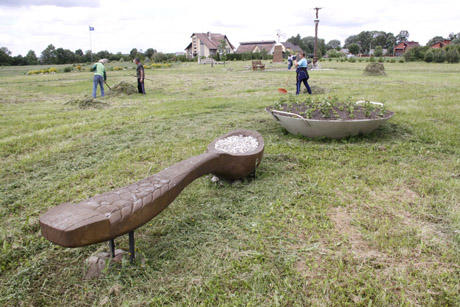 Kraštiečių parke vaikštinėja gandrai. Turistai iš Danijos, sako gidas, pamatę gandrus, kone šoka pro autobuso langą.