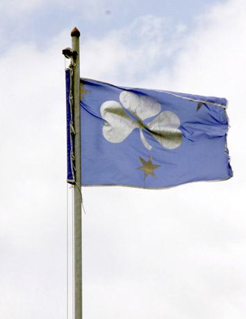 Ant kalniuko plevėsuoja Joniškėlio miesto vėliava.