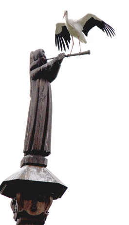 DERMĖ: Ant Miesto angelo krantinėje nutūpė gandras.
