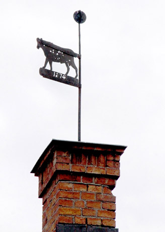 Virš elegantiškos XIX amžiaus pabaigos karvidės iškilusi vėjarodė. Čia, pasak gido, kažkada stovėjo auksinės karvės ir auksiniai jaučiai.