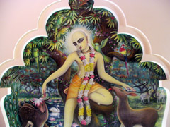 Ant sienų iš Indijos parsivežti spalvingi paveikslai, kuriuose vaizduojami Krišnos apsireiškimai. Namai kvepia smilkalais.