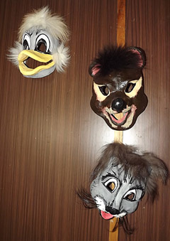 Skilvionių pradinėje mokykloje vaikai ruošėsi vaidinti pasaką apie smaluotą veršelį, lapę ir kitus personažus. Tada ir atnešė jau padarytas vaidinimui reikalingas kaukes.