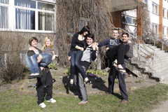 NUOTAIKA: Šventiškai nusiteikę ERASMUS programos studentai buvo žaismingi: (iš kairės) prancūzai Kevin Mayot ir Cyril Pignier pakėlė slovakes Miriamą Fitkovą ir Veroniką Galambošovą. Kiek sudvejoję, ką daryti, graikai šmaikščiai išsprendė problemą: George Koutoulogenis iškėlė Christos Zisis.
