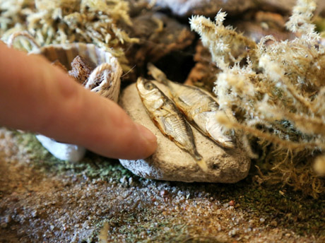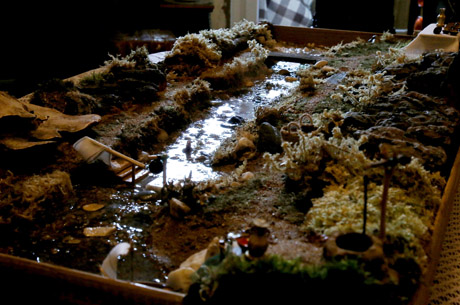 Maketui naudojo kempines, samanas, akmenis, žvyrą. Tilteliais per upę tapo lentelės iš tėvų namo, joms per 70 metų.