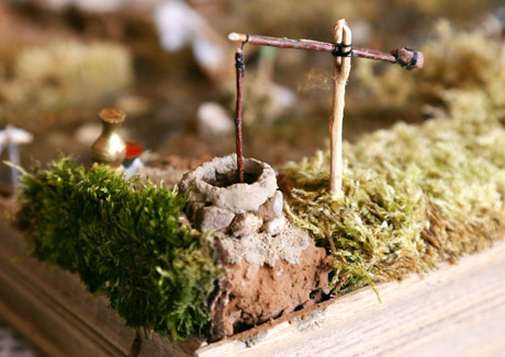 Šį kampą A. Gedvilas kūrė tamsesnį iš asmeninės patirties. Prisimena, kaip nupurtydavo šiurpas Kairių kapinėse ten, kur palaidoti, kaip anksčiau buvo sakoma, nelaimingos mirties žmonės. Todėl ir makete norėjo šį kampą padaryti tamsesnį.