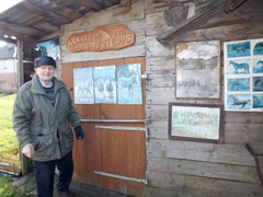 Ant šalia ūkio pastato paties šeimininko suręstos būdos durų — nuoroda: „Arklio muziejus“.