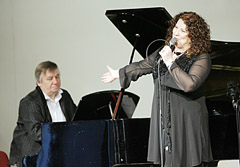 PARTNERIAI: „Kai dainuoju, nepriklausau nuo nieko: režisierių, partnerių, vaidmens didumo ar mažumo. Išeinu kartu su akompaniatoriumi, ir kartu scenoje sukuriam tuos romansus“, — sako Valstybinio Vilniaus mažojo teatro aktorė Larisa Kalpokaitė dainuojanti, akompanuojant pianistui, tarptautinių konkursų laureatui Romualdui Lukošiui.