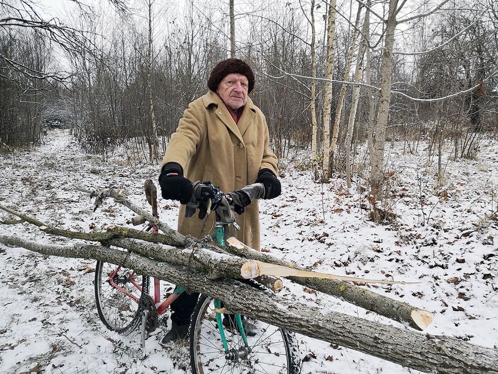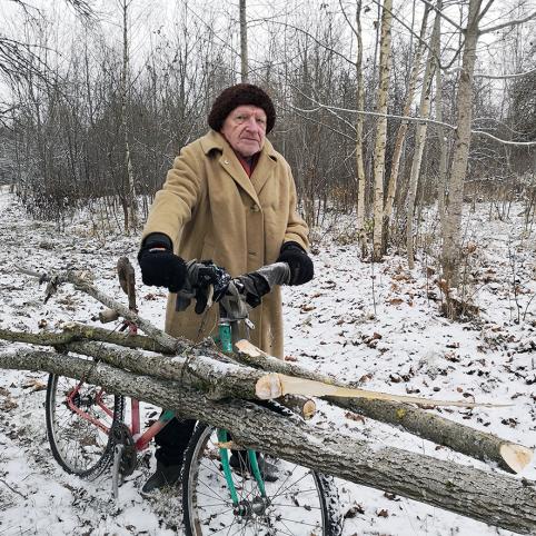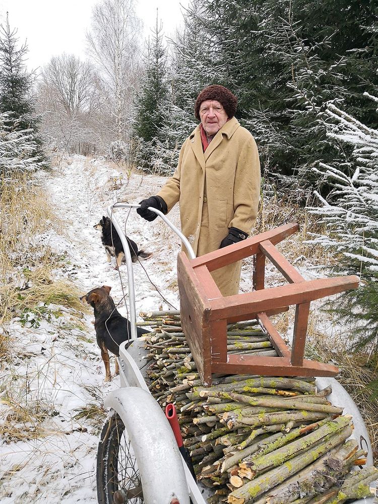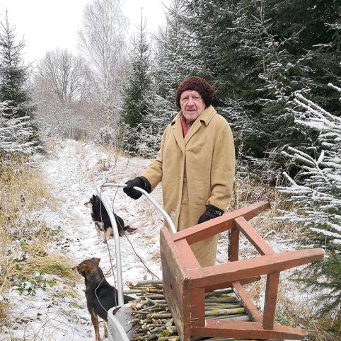 Smulkias šakas Jonas Albertas Naktinis sukapoja miške ir vežimaičiu gabena į namus.