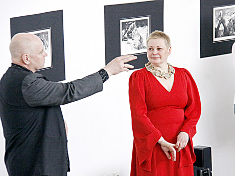 PORA: Pristatydamas parodą Arūnas Uogintas kalbėjo, jog darbai pasakoja apie žmonos gyvenimo įvykius, bianales užsienyje.
