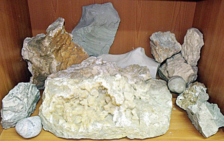 Akcinės kalnakasybos bendrovės „Detonas“ Pakruojo padalinio kabinete stovinčioje spintoje rikiuojasi išvaizdūs pilko, geltono, rusvo, žalio dolomito gabalai, išvagoti linijomis, korėti, su kitų mineralų intarpais.