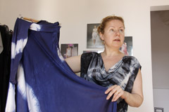 Liksiu ištikima šilkui. Dėviu skirtingų rūšių ir faktūrų šilkus, juos išbandau, kad galėčiau pasiūlyti savo klientėms. Rūbų neturiu daug, bet tik tuos, kuriuos tikrai vilkėsiu — patogų sijoną, džinsus su marškinėliais ir būtinai ilgą šilkinę suknelę.