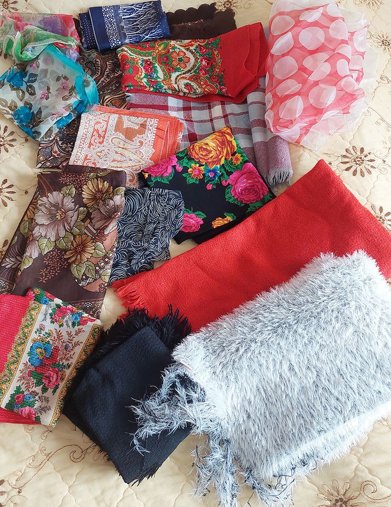 Šitiek skarelių spintoje išlaikiusi, tai gal vis dar Pranutė jomis pasipuošia? „Dabar jau nebe. Bet gal imsiu dar nešioti, plaukai retėja, – linksmai šypsosi pašnekovė. – Tik su skarytėm labai jau babutytėmis atrodom...“