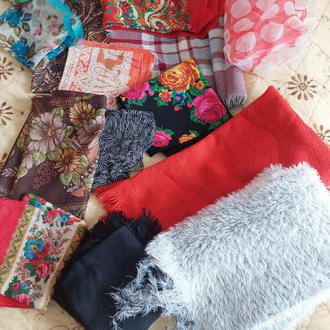 Nemunėlio Radviliškyje, užėjus pas Pranę Šernienę, ši kaip mat iš spintos ištraukė šūsnį skarelių. Kokių tik čia spalvų nebuvo! Vienos – plonos vasarinės, su blizgučiais ir be jų. Kitos – storos žieminės, su kutais ir be jų. Dar keturios likusios, vadinamos „želabnos“, t. y. gedulo laikotarpiui. Suskaičiavome iš viso apie 20 skarelių, jei ne daugiau. Nes Pranutė vis iš kažkur traukė ir nešė parodyti. „O dar kiek šlipsų yra! – atvėrusi spintos duris parodė glėbį vyriškų kaklaraiščių. – Tai amžiną atilsį vyro, tik vis nekyla ranka išmesti“.