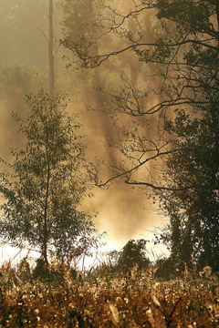 Peržiūrėję įspūdingus medelių, vaisių, uogų vaizdus, šoktelime į laukinę gamtą. Atsiveria peizažai: rusva žolė, medžių kamienai, debesys, rūkas, tarsi aplieta vėlyvu rudeniu, o gal — apsupta gaisro dūmų. Fotografuota auštant, sako nuotraukos autorius. Ši fotografija tapo paveikslu svetainėje. Labai patiko dukrai.