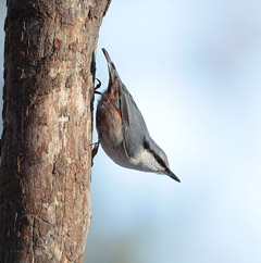 IŠSKIRTINUMAS: Bukutis iš kitų paukščių išsiskiria gebėjimu laipioti medžio kamienu žemyn galva.