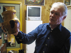 TOŠIS: Iš beržo tošies Česlovas Gudauskas ištekino originalų ąsotį.