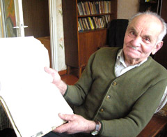 MEDŽIAGA: Juozo Mockūno rankose – segtuvas su jo surinkta medžiaga apie apylinkes, tarpukario Pašvitinio miestelio planas.