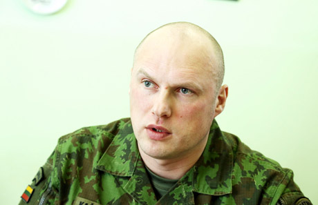 VADAS: „Pirmasis pusmetis buvo įdomus, nauja tarnybos vieta nenuvylė. Nebijau atsakomybės – jei būčiau bijojęs per tarnybos metus, čia nesėdėčiau. Sutinku naujus žmones, naują požiūrį. Savanorių tarnybos ir reguliarių padalinių specifika skiriasi“, – sako Prisikėlimo apygardos 6-osios rinktinės vadas majoras Nerijus Kačkauskas.