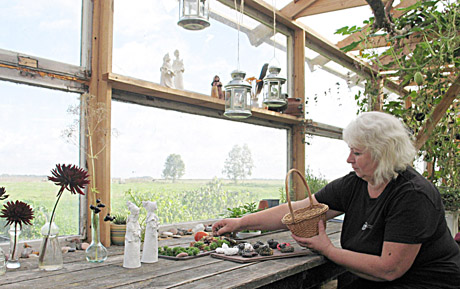 Laima ima nuo lentynėlių skulptūrėles. Jas kūrė ji ir jos miestietės draugės. Moterys šią vasarą čia praleido daug malonaus laiko.